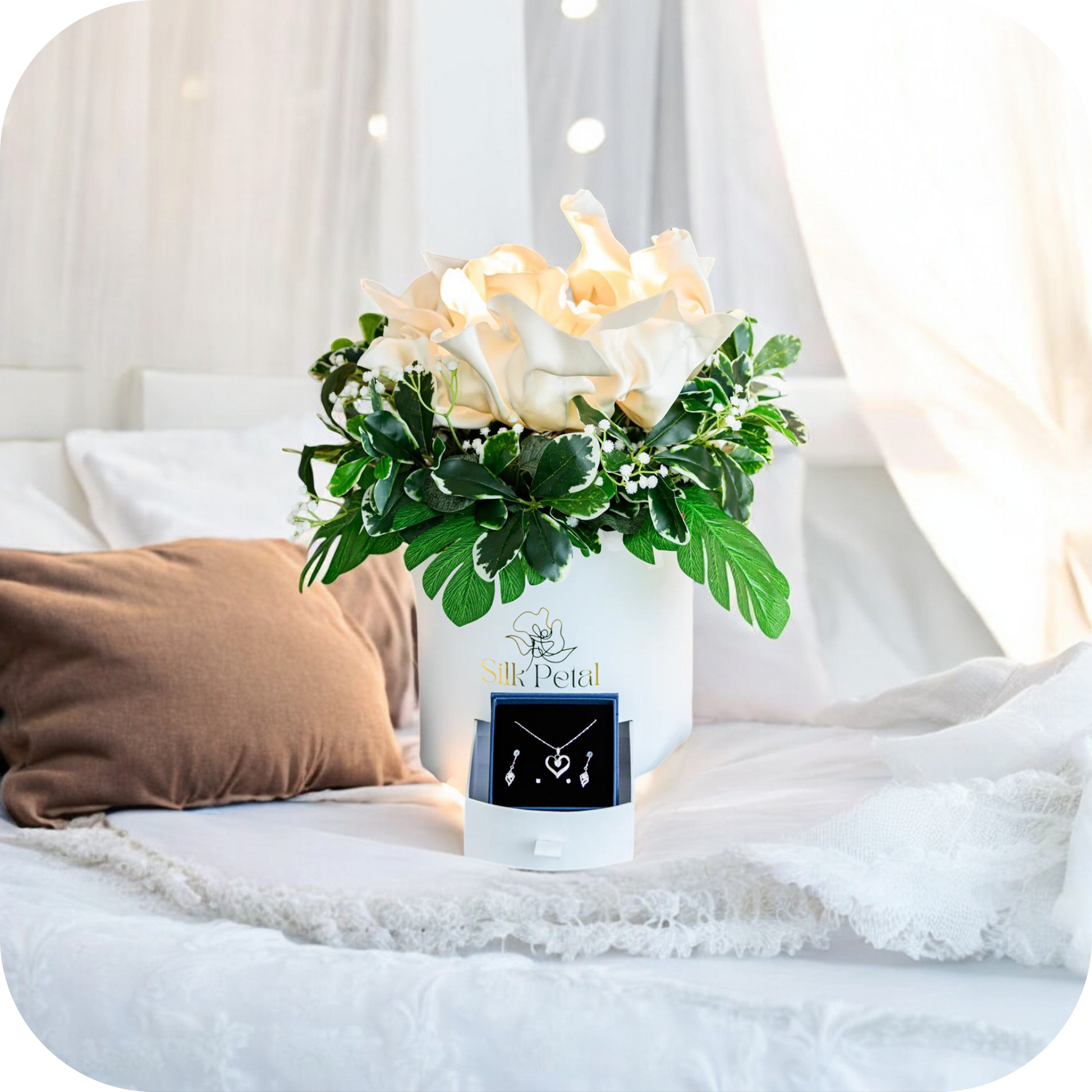 An elegant gift box with our stunning illuminated flower design at the top which creates an epic effect with the hidden compartment at the foreground that is perfect for thoughtful surprises like jewelry, love notes and any other small keepsake for your loved one! This gift box is perfect for anniversaries, birthdays, or other special moments.